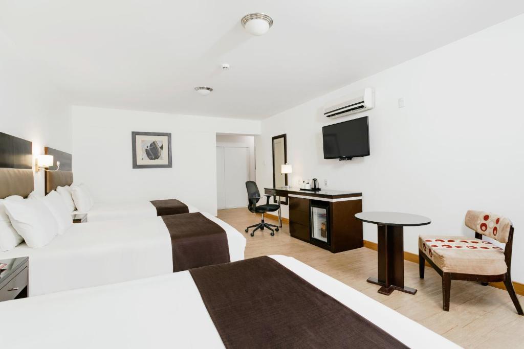 El Wyndham Costa del Sol Chiclayo ofrece amplias habitaciones con TV vía satélite, wifi gratuito, piscina al aire libre y casino. El hotel se encuentra en el centro de Chiclayo. Algunas habitaciones incluyen desayuno buffet gratuito, servido a diario en el restaurante. Las habitaciones del Hotel Wyndham Costa del Sol Chiclayo disponen de aire acondicionado, minibar y escritorio. Los baños privados incluyen ducha. Hay servicio de habitaciones disponible. Los huéspedes pueden relajarse en la sauna y la bañera de hidromasaje. Hay un gimnasio para hacer ejercicio y una terraza para disfrutar del sol. El Wyndham Costa del Sol Chiclayo cuenta con el restaurante Paprika Chichlayo, que sirve platos nacionales e internacionales. El bar Walak sirve bebidas y refrigerios durante todo el día. Hay aparcamiento gratuito disponible en las inmediaciones. El Parque Provincial de la FAP se encuentra a 5 minutos en coche del Wyndham Costa del Sol Chiclayo. El Aeropuerto Gonzales está a 5 minutos en coche.